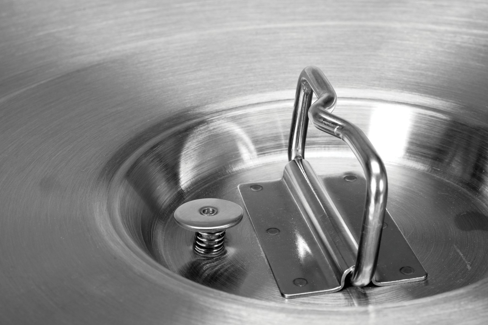 Capacul se închide cu 6 cleme, are mânere solide care facilitează transportul și o supapă de decompresie care previne aspirarea capacului în timpul transportului produselor fierbinți. |