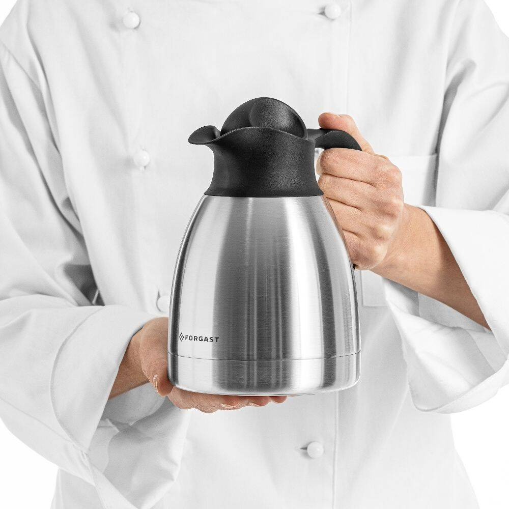 Termosul conferință din oțel inoxidabil cu capac detașabil 1 l FORGAST FG05813 este un recipient practic și elegant pentru depozitarea băuturilor, ideal pentru întâlniri de afaceri, conferințe sau picnicuri în aer liber. Se remarcă prin construcția solidă din oțel inoxidabil și mânerul ergonomic, care facilitează turnarea și transportul. Datorită funcționalității sale, menține eficient temperatura băuturilor calde și reci pentru o perioadă îndelungată, ceea ce îl face un accesoriu indispensabil oriunde contează confortul și profesionalismul.