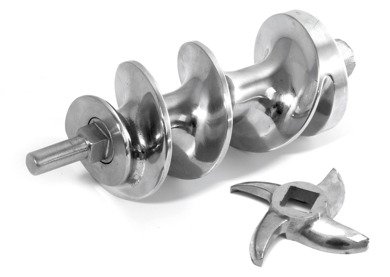 Mașină de tocat carne Hendi 12 Profi Line (mașină de tocat) este un tocător pentru carne crudă sau gătită cu o capacitate aproximativă de 100 k/oră. Carnea tocată trebuie să fie pre-tăiată (curățată de piele și os, tăiată în bucăți). Cuva de încărcare și capul sunt fabricate din aliaj de aluminiu lustruit, iar gâtul din fontă. Lama și burghiul sunt fabricate din oțel inoxidabil, iar știftul de presiune este fabricat din polietilenă.