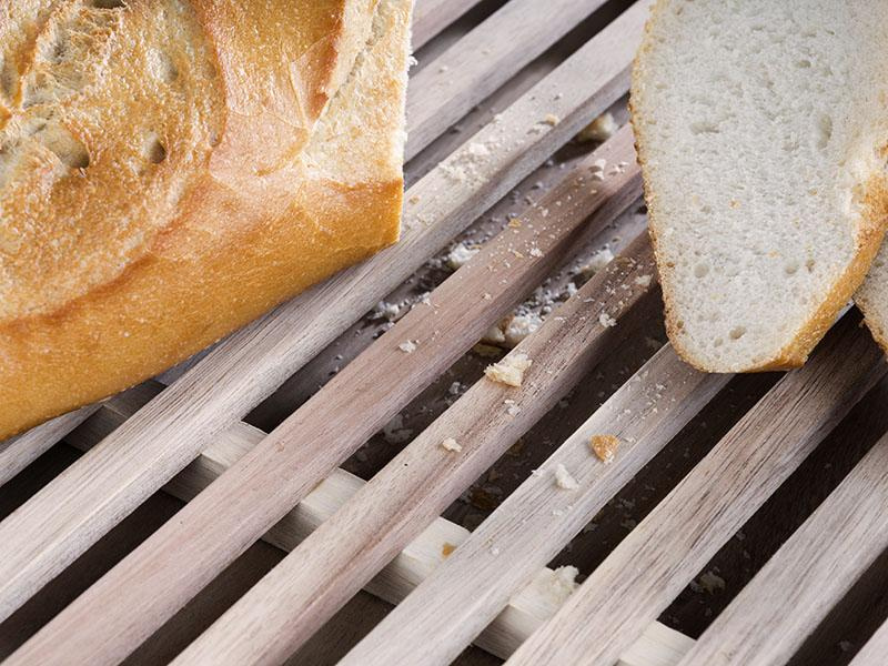 Placa de tăiat LETTER este perfectă pentru utilizarea zilnică atât în bucătăria de acasă, cât și în bucătăriile profesionale. Datorită tăvii detașabile pentru firimituri, menținerea ordinii în timpul tăierii pâinii este deosebit de ușoară. Picioarele antiderapante garantează stabilitate chiar și pe suprafețe netede, iar suprafața mare de lucru permite pregătirea facilă a ingredientelor pentru diferite feluri de mâncare. Inscripțiile decorative conferă plăcii un caracter unic, făcând-o și un element atractiv al echipamentului de bucătărie.