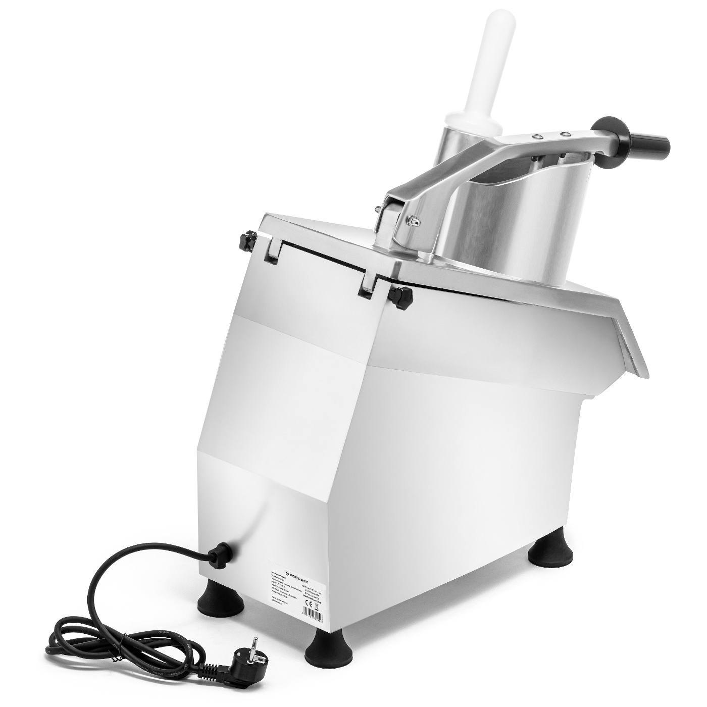 Tocătorul electric este echipat cu două orificii de alimentare diferite – unul oval, destinat legumelor mai mari, precum cartofii sau varza, și unul rotund, cilindric, ideal pentru produse lungi și delicate, de exemplu morcovi sau castraveți. Astfel, dispozitivul permite procesarea rapidă și comodă a diferitelor tipuri de legume fără a fi necesară tăierea lor prealabilă, un aspect esențial în bucătăriile profesionale unde fiecare minut contează.