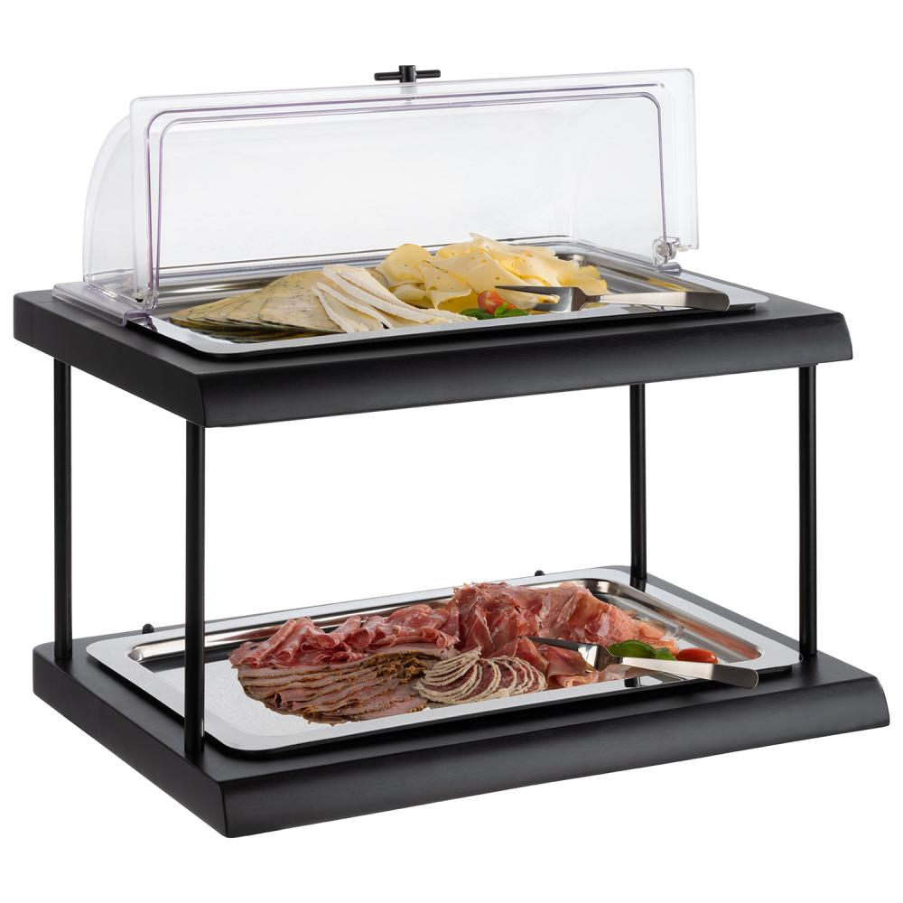Vitrină bufet cu element de răcire, pe două niveluri DOPPELDECKER GN 1/1, negru, 60x41x36 cm APS 11547