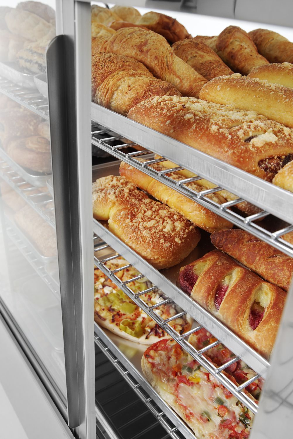 Vitrina încălzită HENDI 233733 a fost proiectată pentru exploatare intensivă în unități gastronomice. Construcția stabilă din oțel inoxidabil asigură durabilitate și ușurință în curățare, aspect extrem de important în locurile unde se servește mâncare. Geamul frontal dublu nu doar crește siguranța, ci permite și o expunere atractivă a produselor. Ușile glisante din spate, în două părți, facilitează operarea și accesul rapid la interiorul aparatului. Iluminarea LED montată în partea superioară a camerei luminează uniform preparatele expuse, evidențiind aspectul vizual al acestora. Rafturile cromate, reglabile, permit organizarea optimă a spațiului în funcție de tipul produselor expuse. Butonul pentru reglarea temperaturii și termometrul analogic clar permit operarea intuitivă și controlul total asupra condițiilor din interiorul vitrinei.