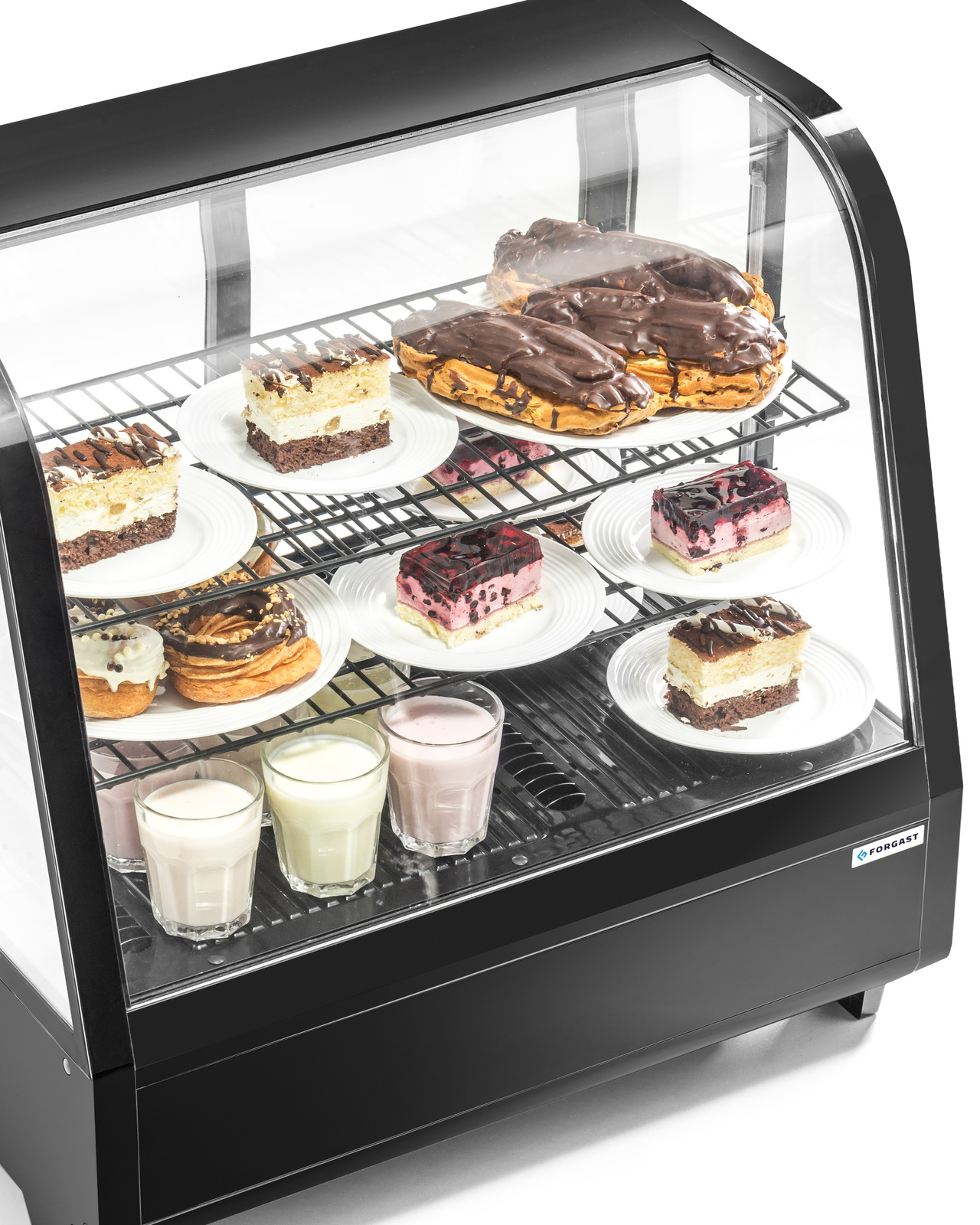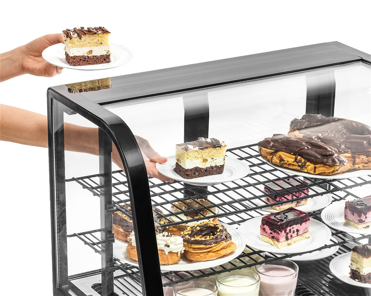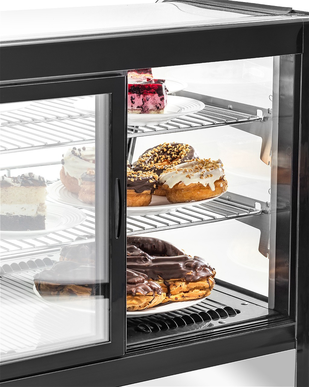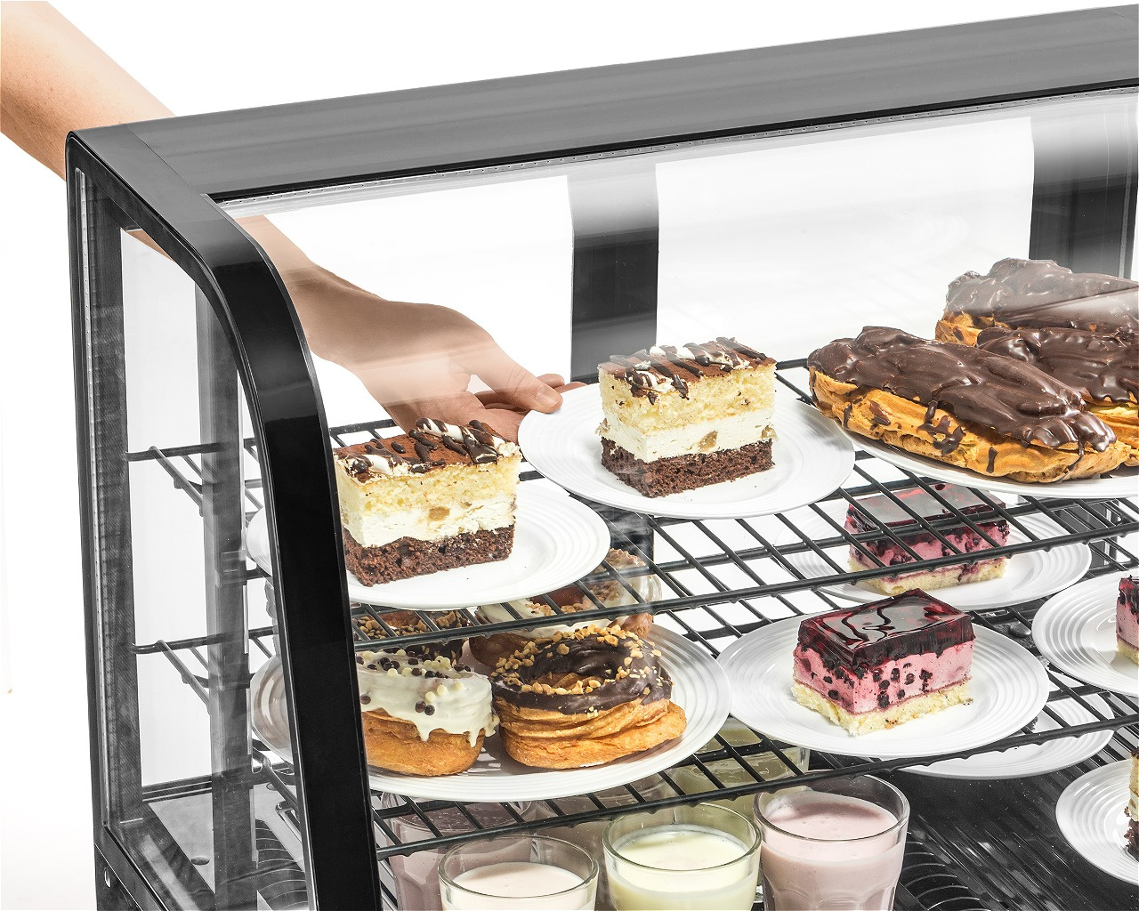 - Carcasă din sticlă – permite prezentarea produselor din orice unghi, atrăgând atenția clienților și încurajând achiziția. Este ideală pentru expunerea prăjiturilor, deserturilor, băuturilor sau sandvișurilor.