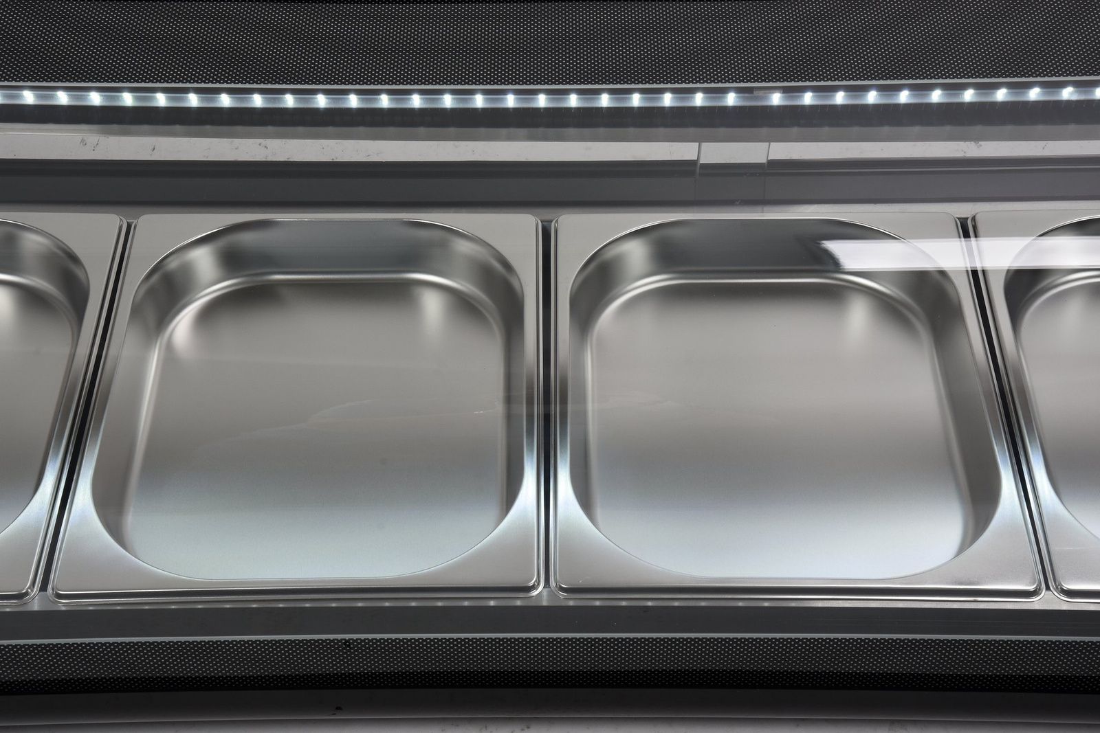 Vitrina a fost realizată cu grijă din materiale de înaltă calitate, ceea ce garantează durabilitatea și soliditatea construcției. Finisată cu detalii și cu atenție la estetică, vitrina frigorifică YATO se integrează în designul modern al localurilor gastronomice, adăugând un plus de eleganță.