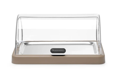 Această cutie modernă de expunere este o soluție practică pentru prezentarea și depozitarea preparatelor proaspete care necesită menținerea unei temperaturi scăzute. Vitrina frigorifică simplă roll-top Duo UNIQ, proiectată de Robert Bronwasser, se remarcă prin culoarea elegantă bej și construcția funcțională, ideală pentru bufete din restaurante, hoteluri sau cafenele. Capacul transparent de tip roll-top și finisajul estetic o fac un element deosebit în orice amenajare modernă de bufet.