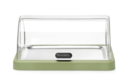 Vitrina este destinată expunerii preparatelor care necesită temperatură scăzută, precum brânzeturi, mezeluri, prăjituri sau fructe. Este potrivită atât pentru bufetele de mic dejun din hoteluri, cât și pentru săli elegante de evenimente sau cafenele. Capacul transparent nu doar protejează preparatele de uscare și contaminare, ci permite și oaspeților să aleagă fără a fi necesară deschiderea întregii vitrine. Datorită marginilor special profilate ale tăvii și mânerului ergonomic, servirea și schimbarea preparatelor se realizează rapid și intuitiv.