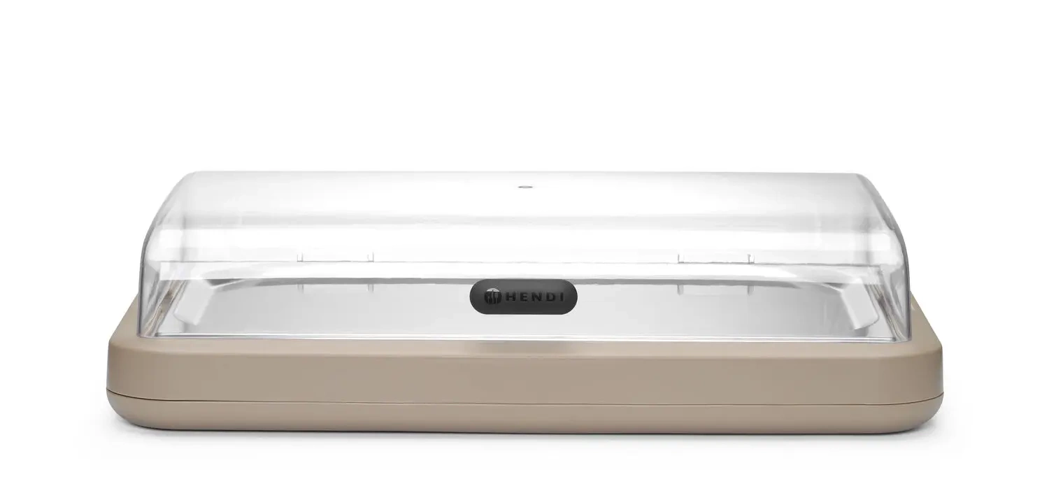 Vitrina frigorifică UNIQ GN 1/1 maro HENDI a fost proiectată pentru funcționalitate maximă în mediul gastronomic. Este dotată cu un capac roll-top ce protejează preparatele de uscare și contaminare, oferind totodată acces facil la servire. Carcasa din polipropilenă rezistentă și ABS transparent garantează durabilitatea și estetica produsului. Setul include o tavă GN 1/1 din oțel inoxidabil și un element de răcire cu gel, care păstrează temperatura scăzută a preparatelor pentru mai mult timp – soluția ideală pentru evenimente lungi, banchete sau micul dejun tip bufet.