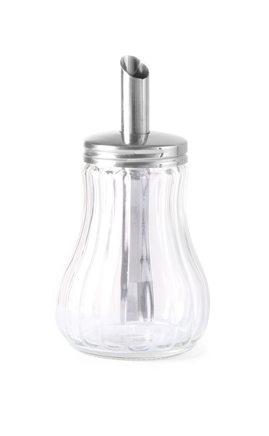 Zaharniță cu capacitate de 0,2 l cu dozator. Realizată din sticlă. Capac din oțel inoxidabil.